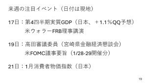 ただ、米国については「利下げはちょっと慎重に」というトーンになるものと思われます。どちらかと言えば、日本のイベントが注目材料になるでしょう。