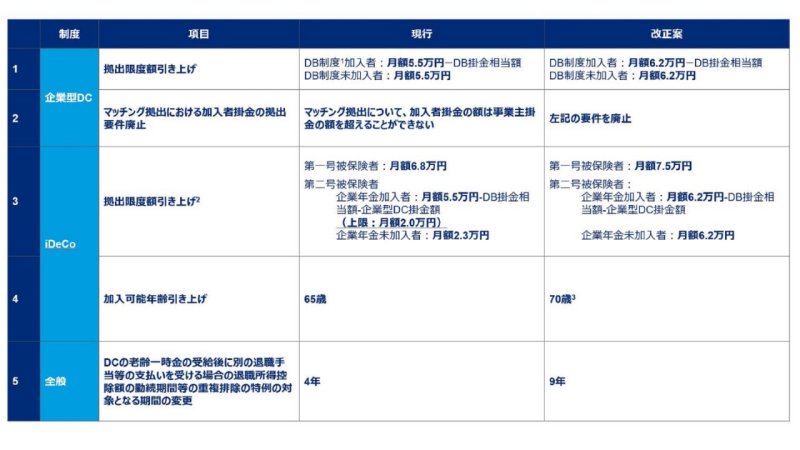 1. 拠出限度額引き上げ(企業型DC、iDeCo)