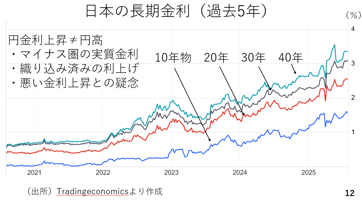 最後に、市場でこうした長期の金利上昇がいわゆる「悪い金利上昇」とみなされている可能性が否定できない点です。参議院選挙を経て政局や政策の先行き不透明感は残りますが、インフレ対策として、総じて財政拡張策が講じられる可能性が高い状況です(12ページ)