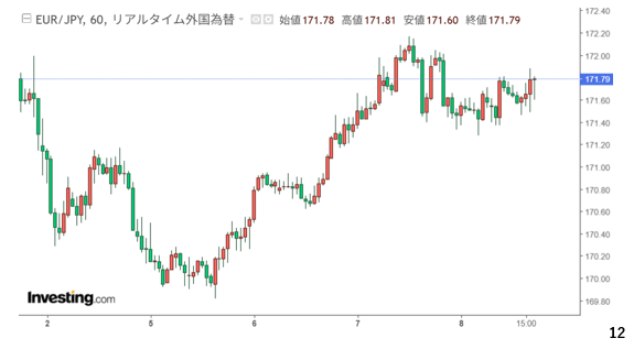 また、ドルと円がともに弱いということは、他の通貨は堅調に推移していると考えられ、弱い円とのコントラストがより鮮明となり、クロス円は上がりやすくなります。実際、今週のユーロ円相場は雇用統計前の水準には及んでいないものの雇用統計後の下げ幅のかなりの部分を回復していることがわかります(12ページ)。