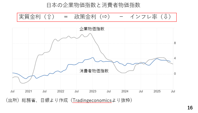 では改めてベッセント財務長官の発言を見ておきましょう。同長官は9月の50bp利下げの必要性に言及した後、14日にはFRBに対して指図をしたわけではないと否定しつつも、やはり50bpの利下げが適切であるとしています。また、より特筆すべきなのは、日本に関する言及です。通常、他国の金融政策について発言することは稀です。このことからこれまでの動画でもお伝えしてきた通り、日米間の関税交渉では円安およびそれをもたらしている日銀の金融緩和が非関税障壁として議論のテーブルに上がってきた可能性を強く示唆していると言えます。こうした発言を見るにつけ、ドル円相場が150円の大台を回復した場合、アメリカからのけん制が強まることが予想されます(5ページ)。