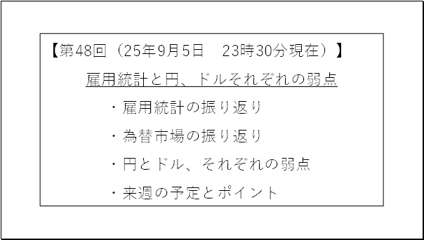 今回のテーマは雇用統計と円、ドルそれぞれの弱点についてです。