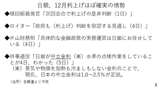 ただ、今回の中立金利の再評価の裏には、広めの利上げの余地を示すことによって、円安期待にブレーキをかけたいとする日銀の隠れたメッセージが隠されているのかも知れません。現在、為替相場と結びつける報道は見られませんが、今後の日銀の動向を注視する必要があります(スライド5)。