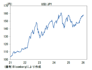 ・他方、Fedの利下げ観測は過去数か月に後退し、最近では2027年に利上げ局面入りとの声も聞かれるようになった。現時点でFF金利先物が織り込む利下げ回数は、2027年3月までに約1.8回となっているが、このまま米経済が失速を回避するようだと利下げ不要論が台頭し易いだろう。筆者は自身の年内2回の利下げ予想がリスクに晒されていると認識している。こうした利下げ観測後退に伴うドル高圧力が円安要因になっている可能性があろう。