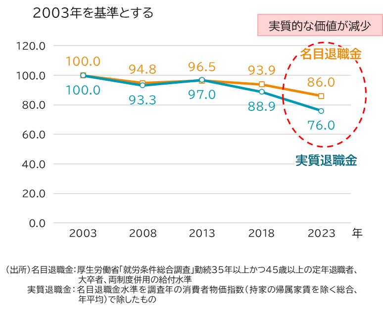実際、統計上も退職給付水準の実質価値減少傾向がみられます。
