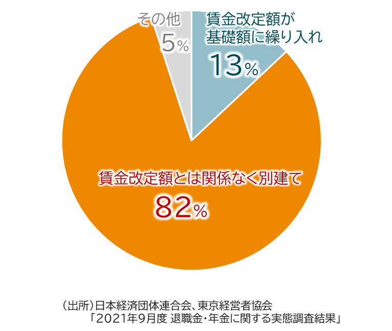 退職給付制度の中で、基準給与としてベアに連動する給与を使っている制度は少なく、多くの企業では、ベアに連動していない給与を基に退職給付額を計算しています。