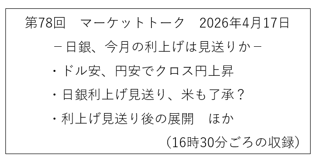 当シリーズでは、高千穂大学の商学部教授で三菱UFJ銀行の外国為替のチーフアナリストを務めた内田稔氏に、為替を中心に金融市場の見通しや注目のニュースをウィークリーで解説してもらう。※この記事は4月17日に配信された「内田稔教授のマーケットトーク 第78回 日銀、今月の利上げは見送りか」を再編集しています。ご質問はYoutubeチャンネルのコメント欄からお願い致します。