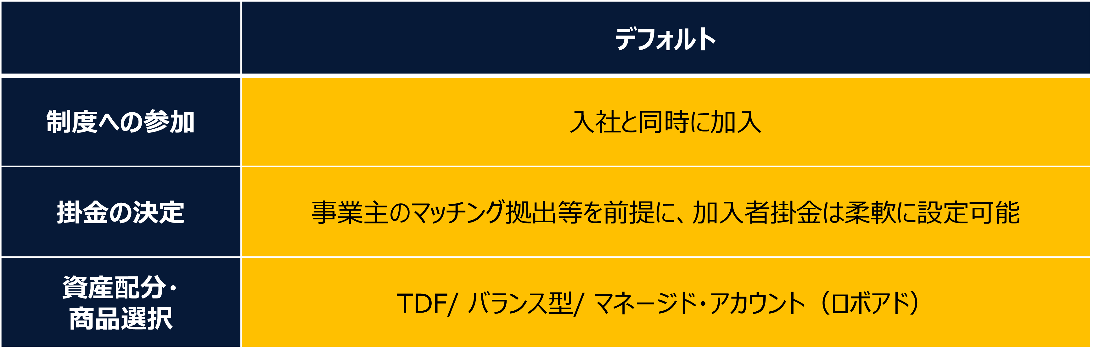 そこで注目されたのが、行動経済学の知見である。人は常に最適な意思決定を行うわけではなく、むしろ「何もしない」という行動を取りやすい。であれば、制度側があらかじめ望ましい選択肢を「デフォルト」として設定しておくことで、加入者の行動を後押しできるのではないか。この発想が、米国DC制度改革の大きな転換点となった。