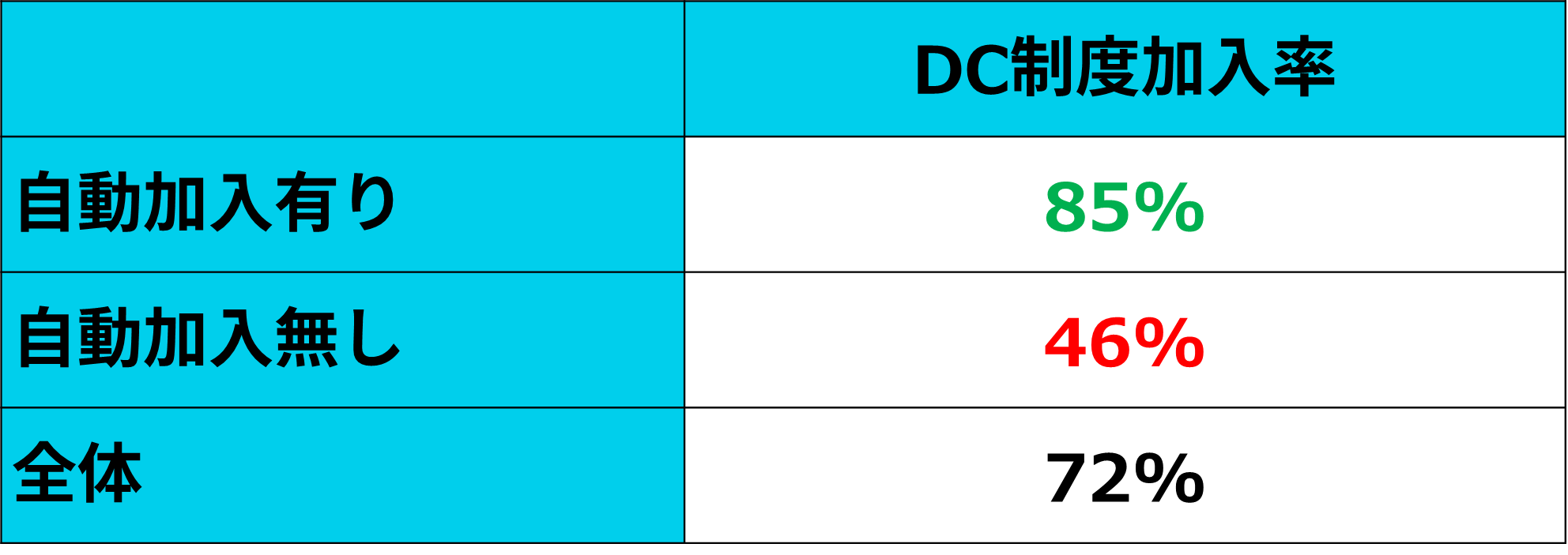 自動加入制度は、その導入の有無でDC制度の加入率に大きな差をもたらしている。(図⑥)