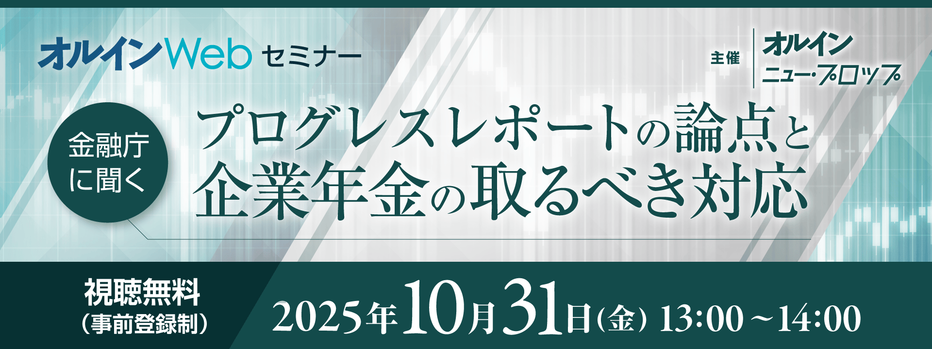 2025年10月31日(金)13:00 より、オンラインセミナー「金融庁に聞く プログレスレポートの論点と企業年金の取るべき対応」を開催致します。
