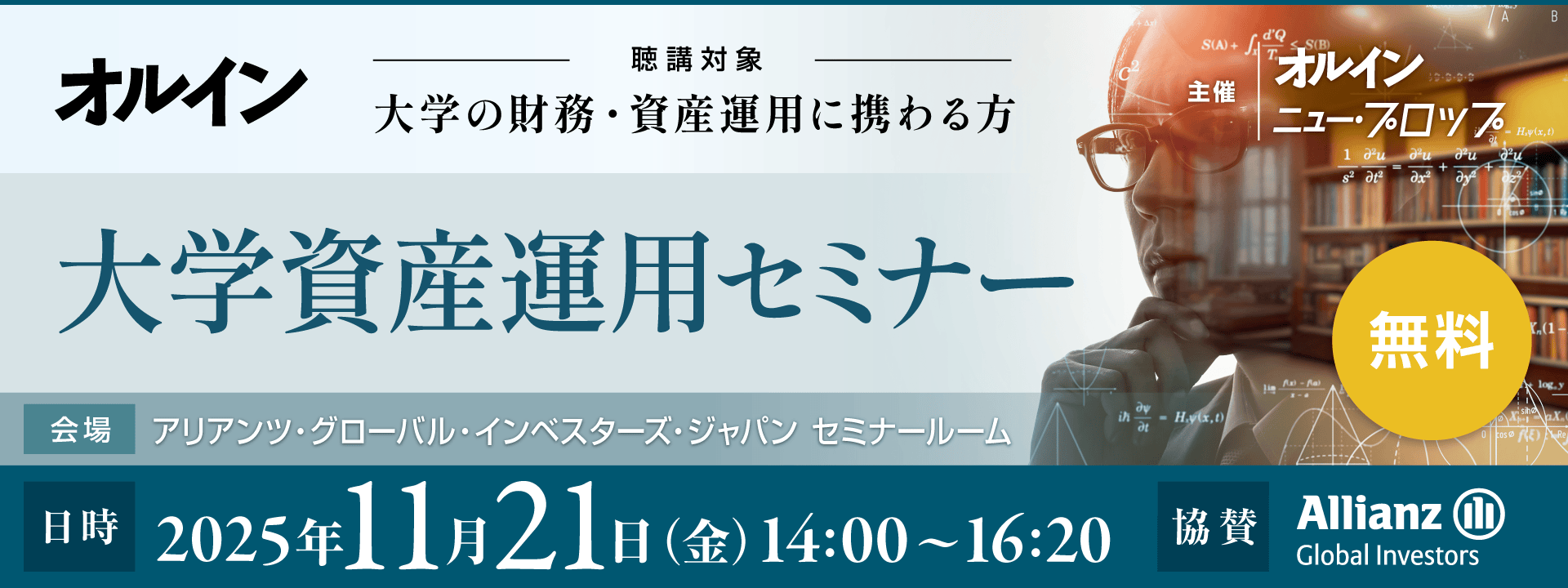 弊誌では2025年11月21日(金)14時よりアリアンツ・グローバル・インベスターズ・ジャパン セミナールームにて、オルイン 大学資産運用セミナーを開催します。