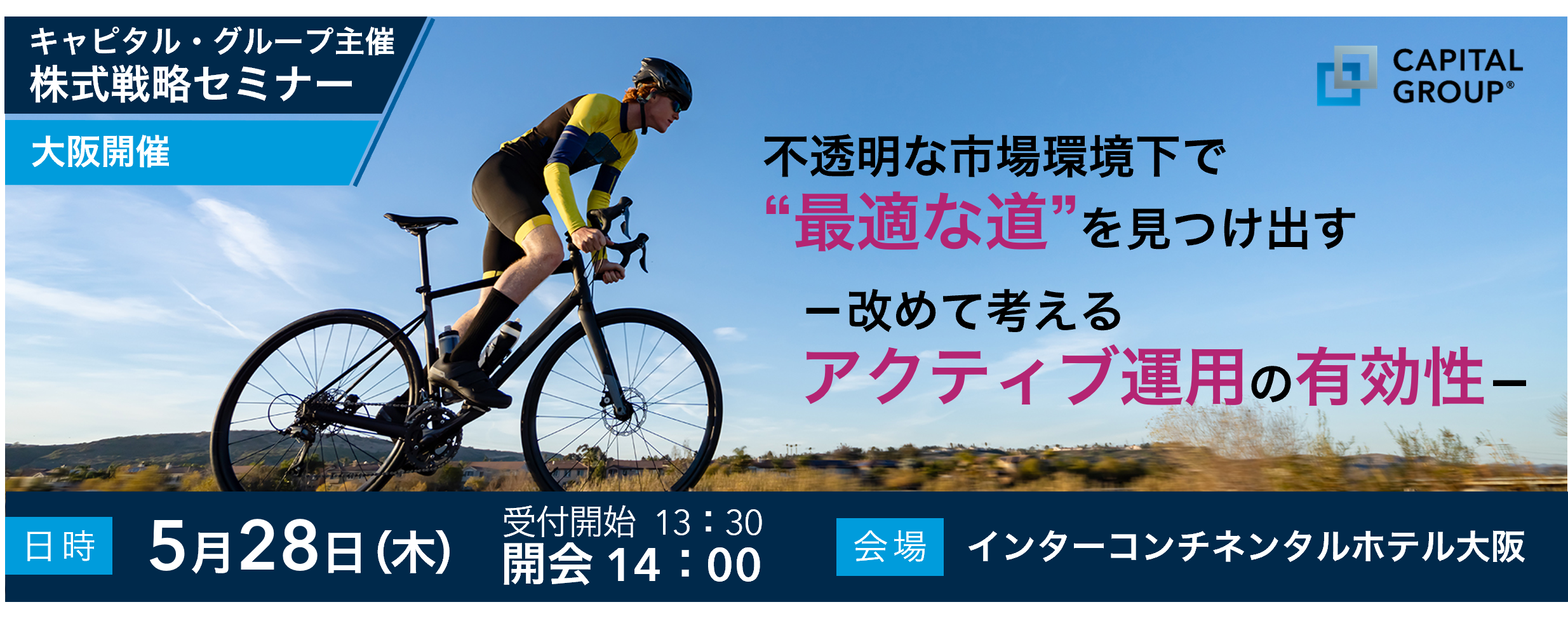 この度、キャピタル・グループでは、外国株式投資におけるアクティブ運用の有効性をテーマに大阪にて特別セミナーを開催いたします。